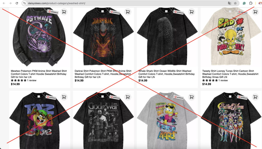 We want to make it clear: Daisystees is not authorized to use or reproduce any content, artwork, or mockups owned by Artsholic. Their actions constitute a serious violation of our intellectual property and brand integrity.