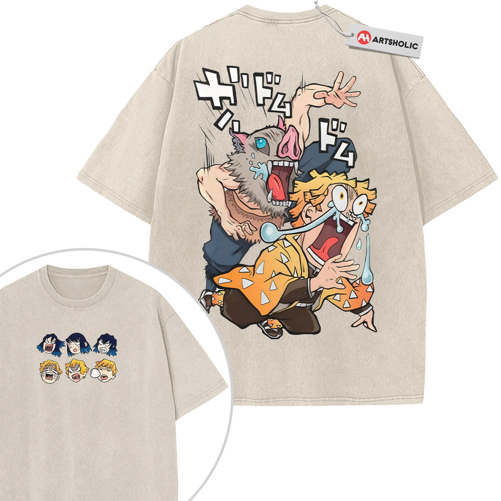 Inosuke Hashibira Shirt, Zenitsu Agatsuma Shirt, Demon Slayer Shirt, Anime Shirt, Vintage T-Shirt 2-Sided