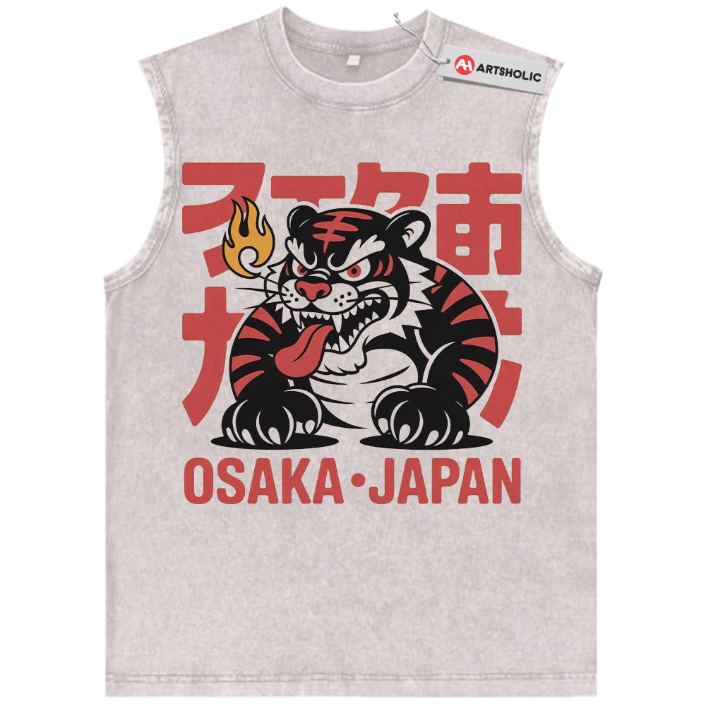 Osaka Japan Tiger Tank Top, Japanese Streetwear Tank Top, Vintage Tank Top