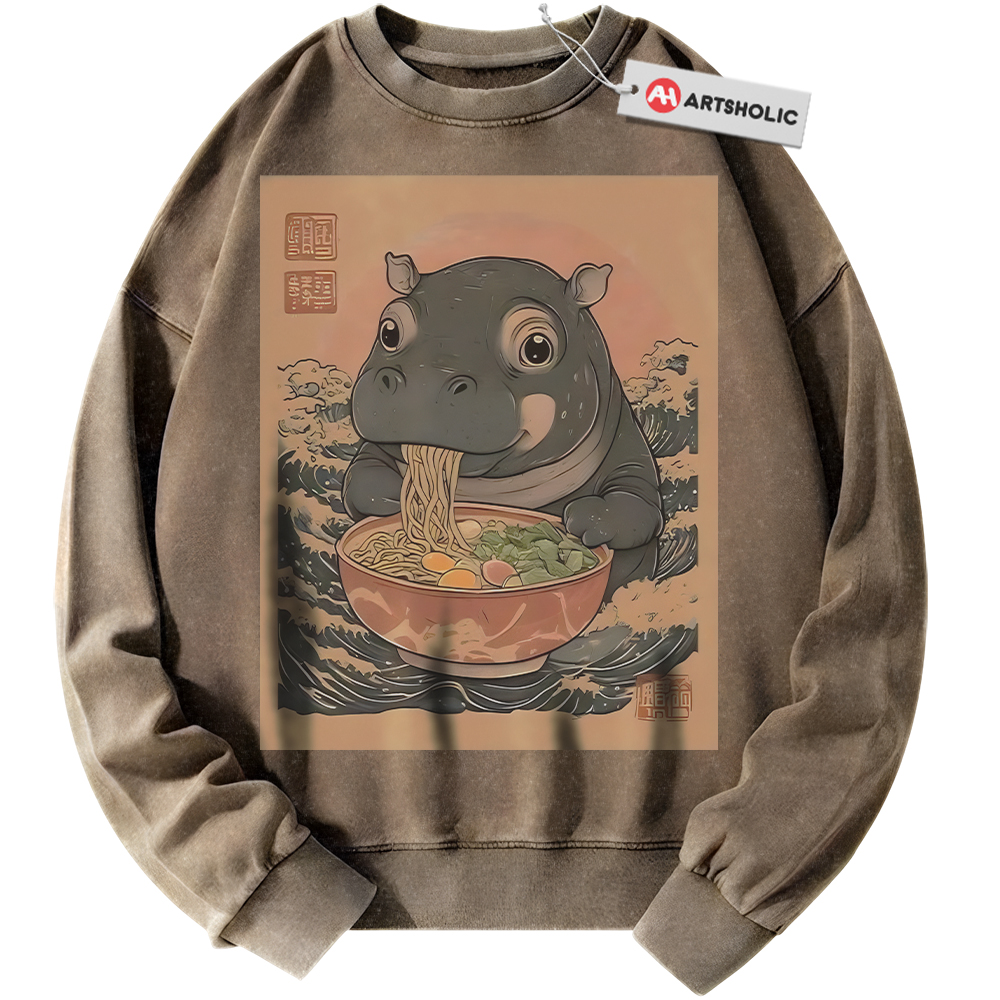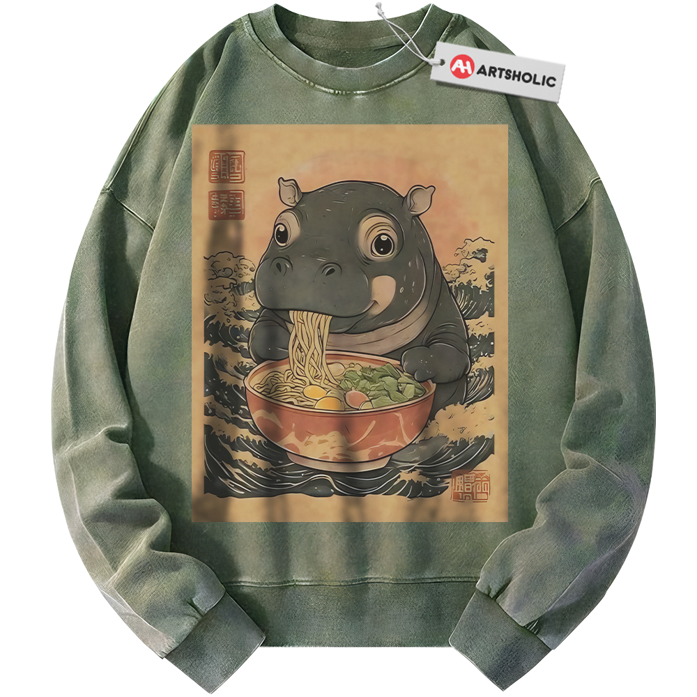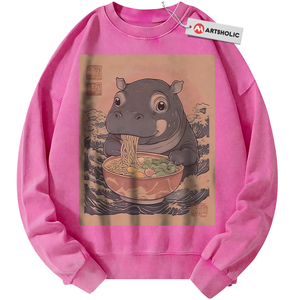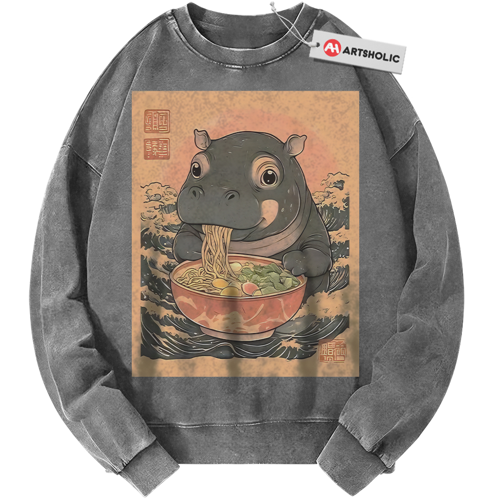 Ramen Hippo Sweatshirt, Japanese Streetwear Sweatshirt, Vintage Sweater