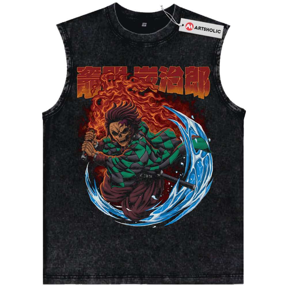 Skull Tanjiro Kamado Tank Top, Demon Slayer Tank Top, Anime Tank Top, Vintage Tank Top
