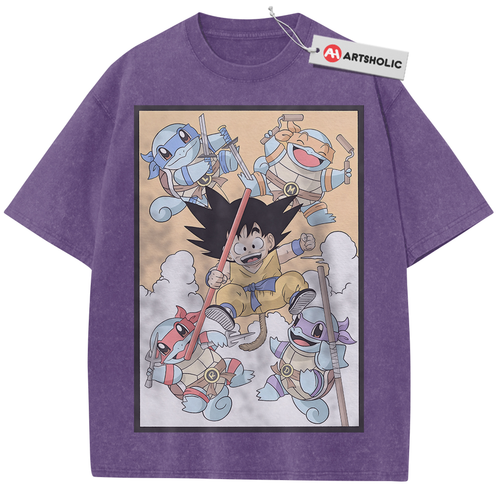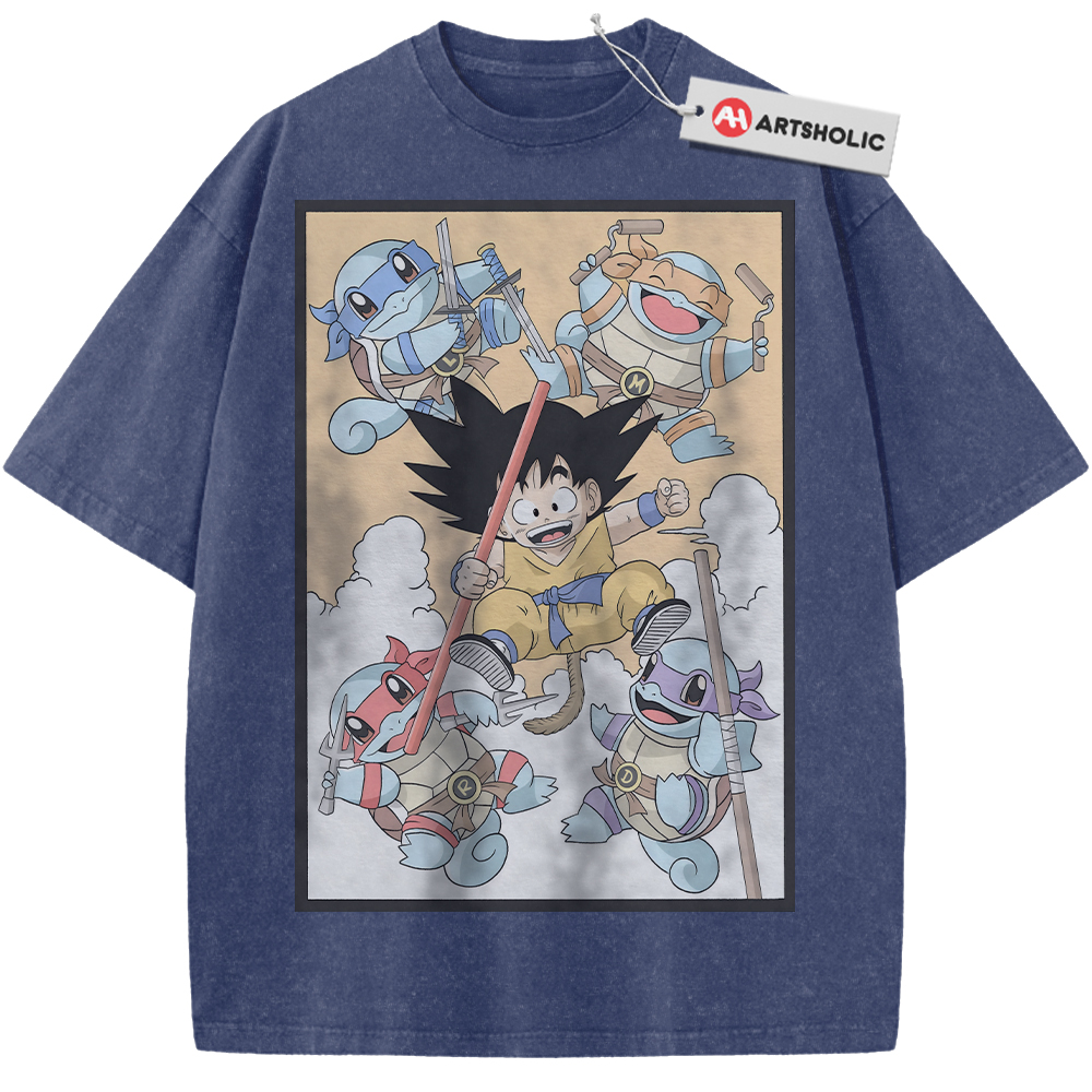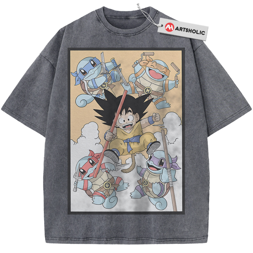 Son Goku Shirt, Squirtle Shirt, Dragon Ball x Pokemon Shirt, Anime Shirt, Vintage T-Shirt