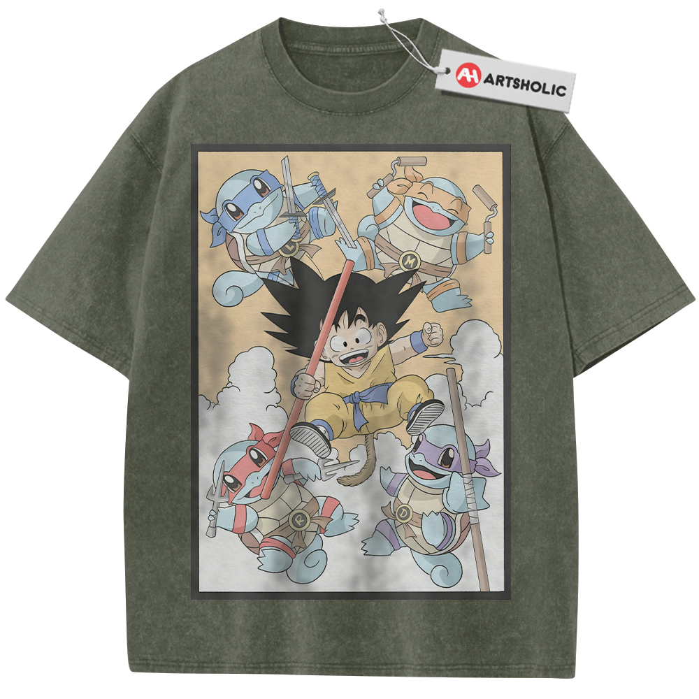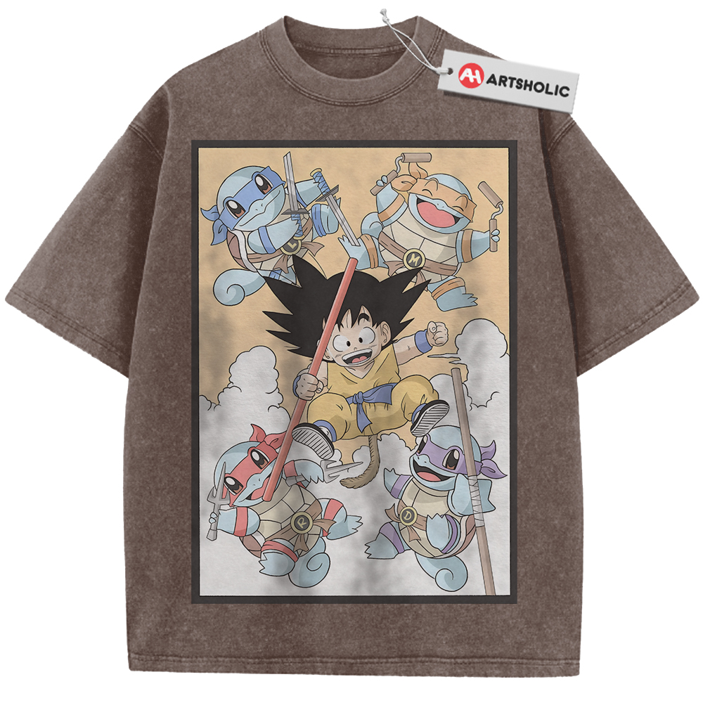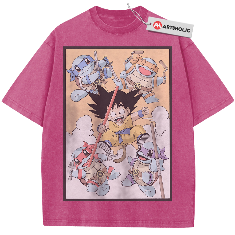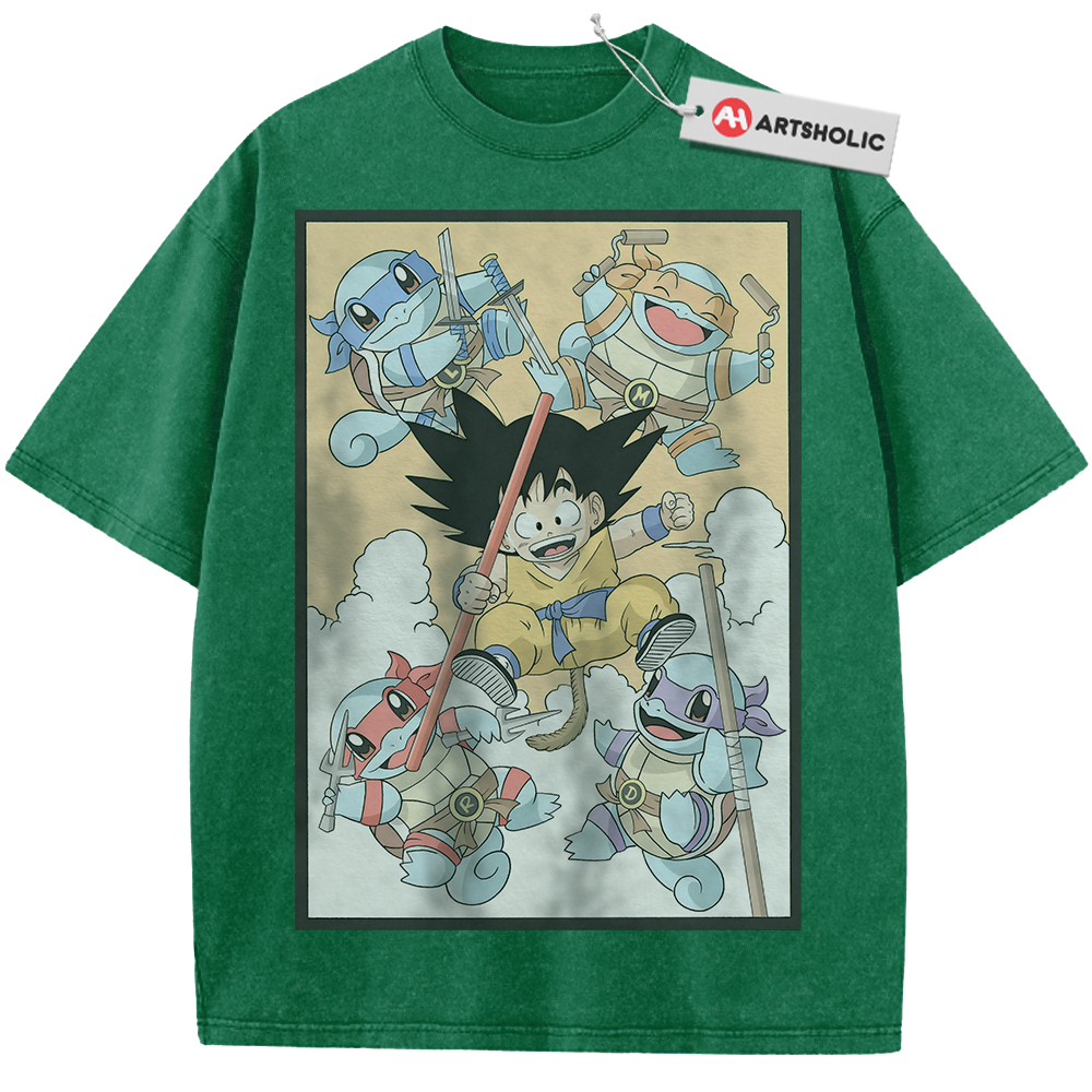 Son Goku Shirt, Squirtle Shirt, Dragon Ball x Pokemon Shirt, Anime Shirt, Vintage T-Shirt