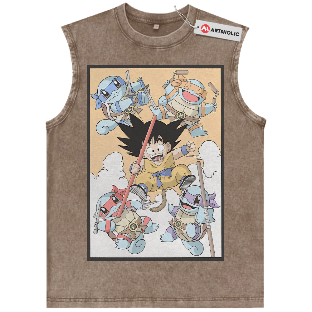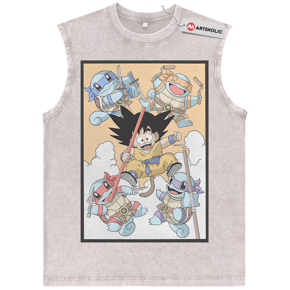 Son Goku Tank Top, Squirtle Tank Top, Dragon Ball x Pokemon Tank Top, Anime Tank Top, Vintage Tank Top