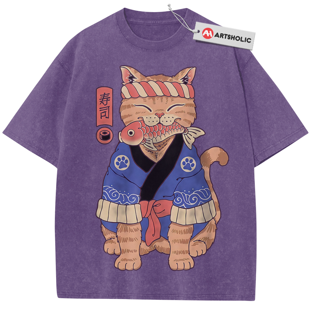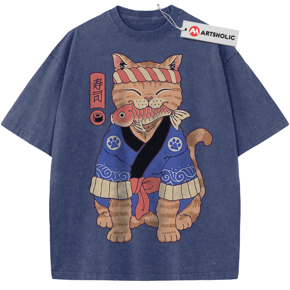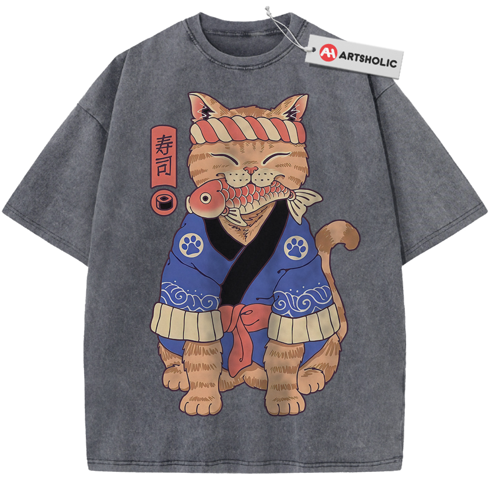 Sushi Cat Shirt, Japanese Streetwear Shirt, Vintage T-Shirt