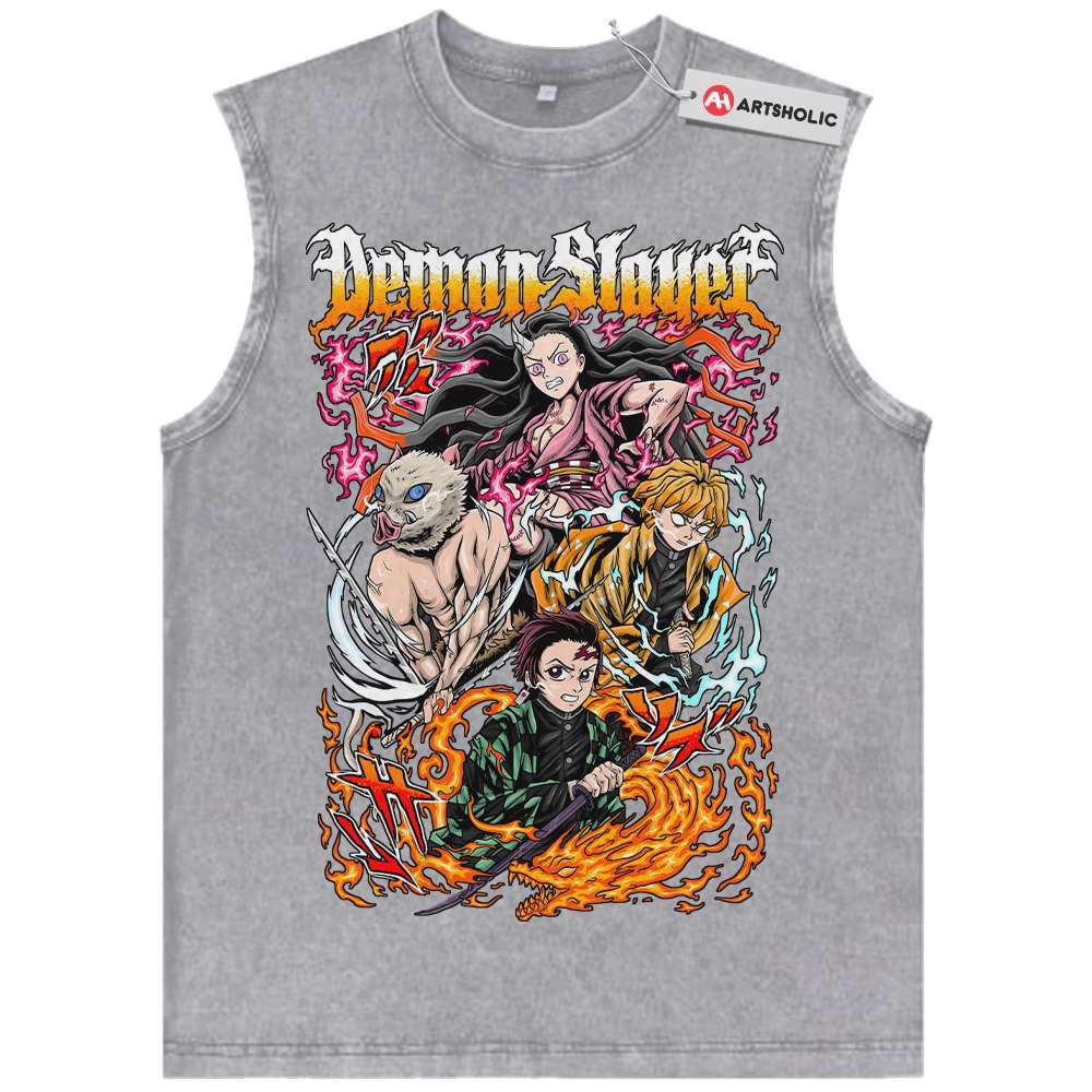 Tanjiro Tank Top, Nezuko Tank Top, Inosuke Tank Top, Zenitsu Tank Top, Demon Slayer Tank Top, Anime Tank Top, Vintage Tank Top