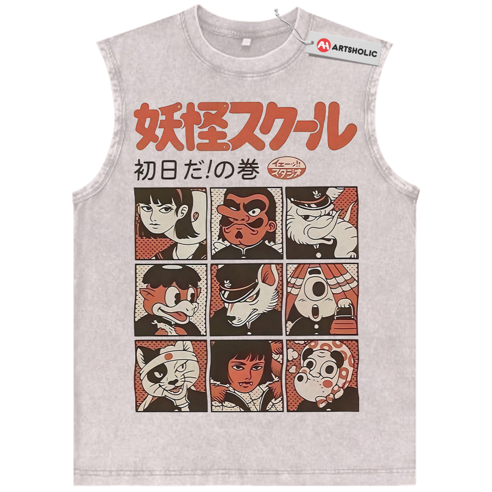 Yokai School Tank Top, Japanese Streetwear Tank Top, Vintage Tank Top